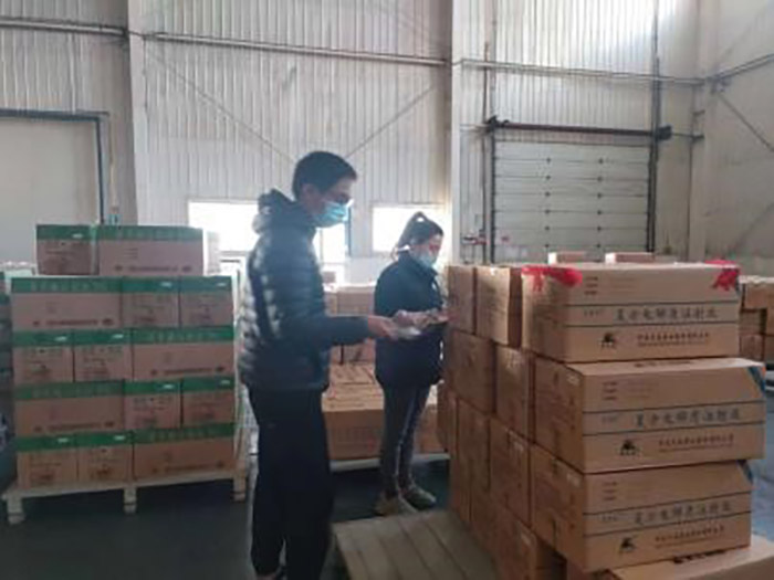 29號一早,琦總頂著巨大的壓力前往多個相關(guān)部門辦理通行證,田金茹想盡一切辦法帶領廠內(nèi)司機去接應辦理通行證的大車司機。大家分頭行動,爭分奪秒,與疫情賽跑。接應司機的路上困難重重,轉(zhuǎn)了不知道多少條道路才把司機接到廠。誰都來不及訴說各自的不容易,在做好自身防護的同時,緊鑼密鼓地安排調(diào)貨、裝車、開票發(fā)貨。