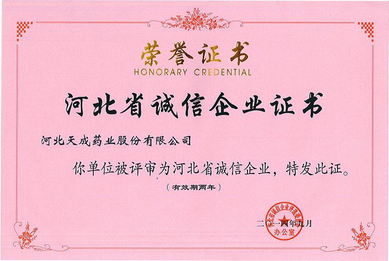 天成藥業被評為誠信企業